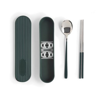 지앤에스키친 보니오 휴대용 도시락 수저 + 수저통 세트, 그린, 숟가락 + 젓가락 + 수저케이스, 1세트