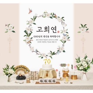 판매상품 칠순 현수막 칠순상 대여 보다 편리한 부모님 생신 칠순 상차림 고희연 고희, 목련리스(화이트부케)_