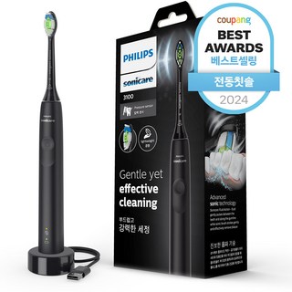 필립스 소닉케어 3100 시리즈 음파 전동칫솔, HX3671/54, 블랙, 1세트