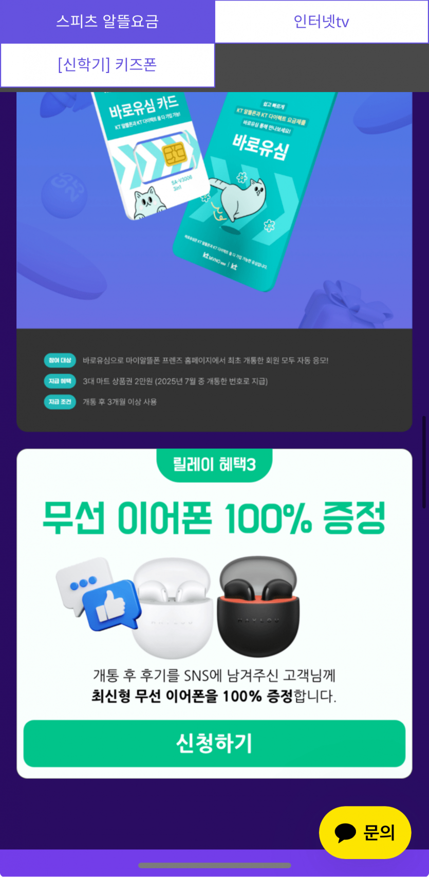 혜택은 사은품으로 밀리의서재,이마트 2만원 상품권,샤오미 이어폰 증정