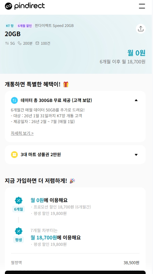 핀다이렉트SK망 120기가+5MPS 1100원, 11기가+2기가+3MPS 550원 KT망 20기가+50기가 0원 알뜰폰/뽐뿌 작성자 정보 관리자 쪽지보내기 메일보내기 자기소개 아이디로 검색 전체게시물 쪽지보내기 메일보내기 자기소개 아이디로 검색 전체게시물 작성 작성일 2026.01.16 19:09 컨텐츠 정보 797 조회 0 추천 0 비추천 목록 본문 무한 통신의 시작 Zhttps://www.yogeum.com/stkt341 0 추천 0 비추천 SNS 공유 관련자료 링크 https://www.yogeum.com/stkt341 212 회 연결 이전 핀다이렉트KT 20기가(2월~6개월간 50기가제공) + 바로유심 2만원 상품권 110원 총 70기가 작성일 2026.01.24 00:19 다음 알뜰폰) SK 알뜰망 100기가 5MPS 3300원 , 11기가+2GB+3MPS 2200원 작성일 2026.01.05 22:00 댓글 0 등록된 댓글이 없습니다. 로그인한 회원만 댓글 등록이 가능합니다. 목록